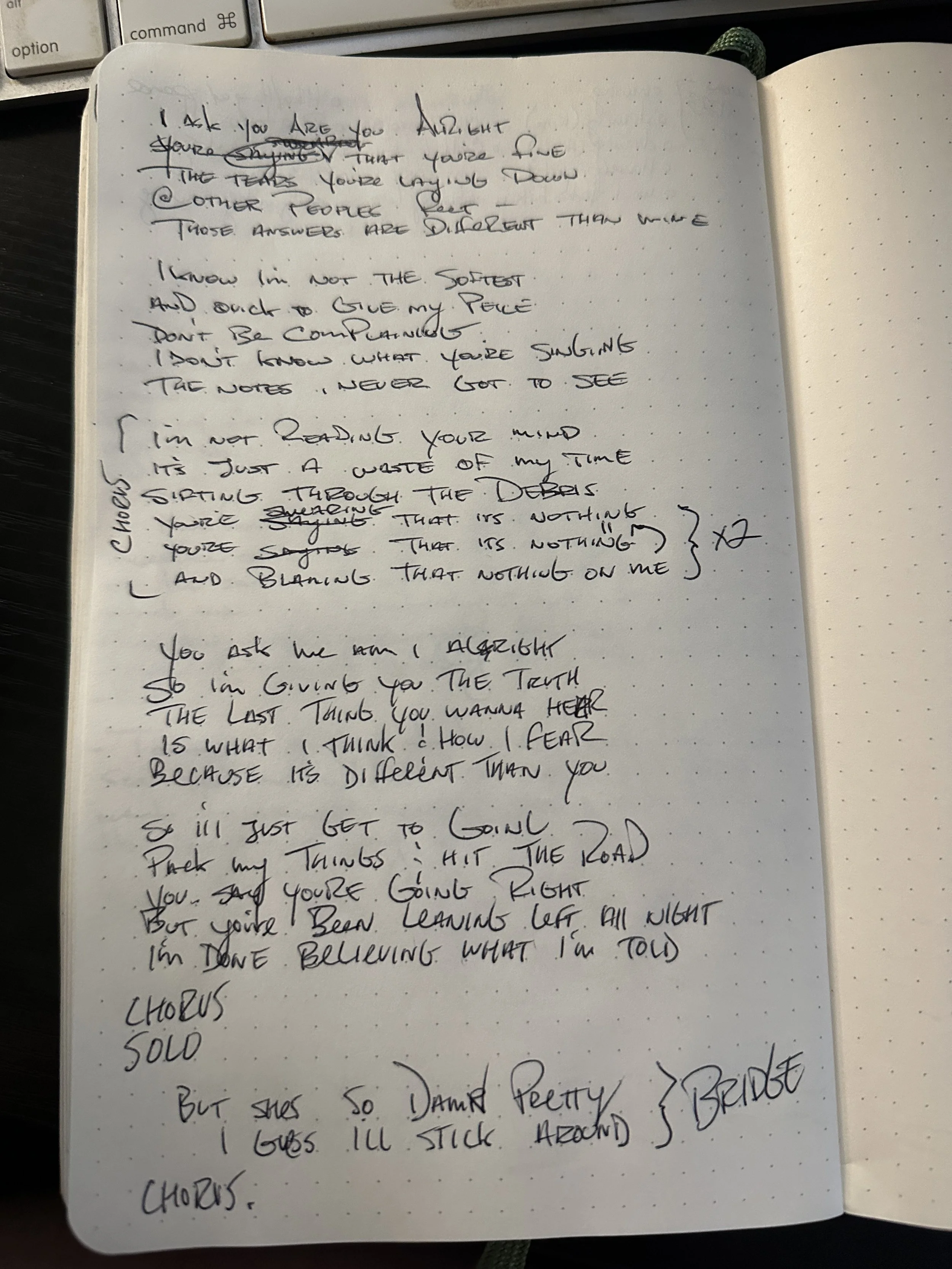 I guess this song could be about avoidance as well, but that’s the beauty in a song, it can be about so many different things depending on what line resonates with the listener. It’s an overly obvious statement, but we are ever becoming more complex as we walk through life. The strings we tie to different drifting anchors create a network of pure chaos. Some of those strings stay elastic and stretch with us, some of them snap and leave a horrible fray, and some stay just where they were always meant to. To start to navigate another’s tangle, you need a guide, and the guide isn’t always interested in letting you in. It’s easier to close the door to that tangle and ensure the curious parties that it’s all straight lines and smooth connections. “Everything is just fine”