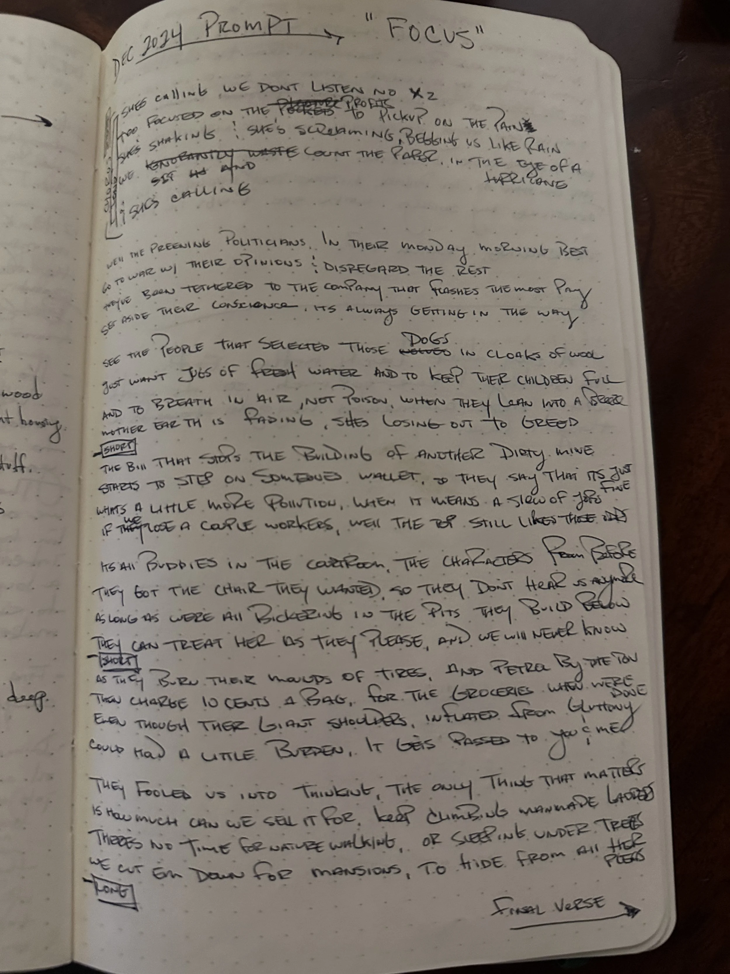 I think this tune has some great lines in it, and I appreciate the muse throwing me some bits of lyrical interest. I think this year I am going to try and be a little less nervous about scaring people off when I have an opinion that I want to share. I’m a strong proponent of being open minded and recognizing our similarities before our differences, but the idea of putting monetary wealth and power over the preservation and reverent stewardship of natural wonders… I don’t have any issues planting my flag on that hill.